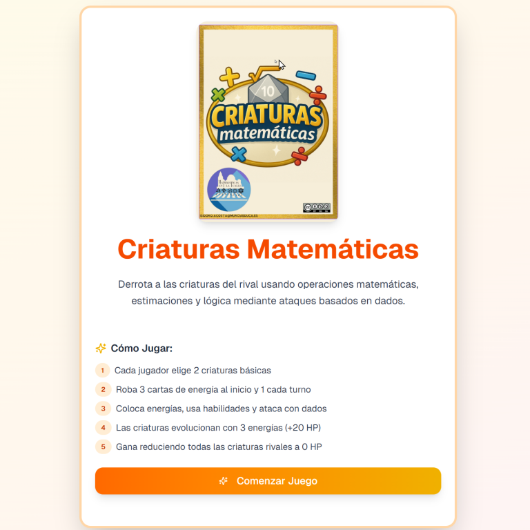 El juego Criaturas matemáticas Print and play orientado a la gamificación de la práctica del cálculo mental.